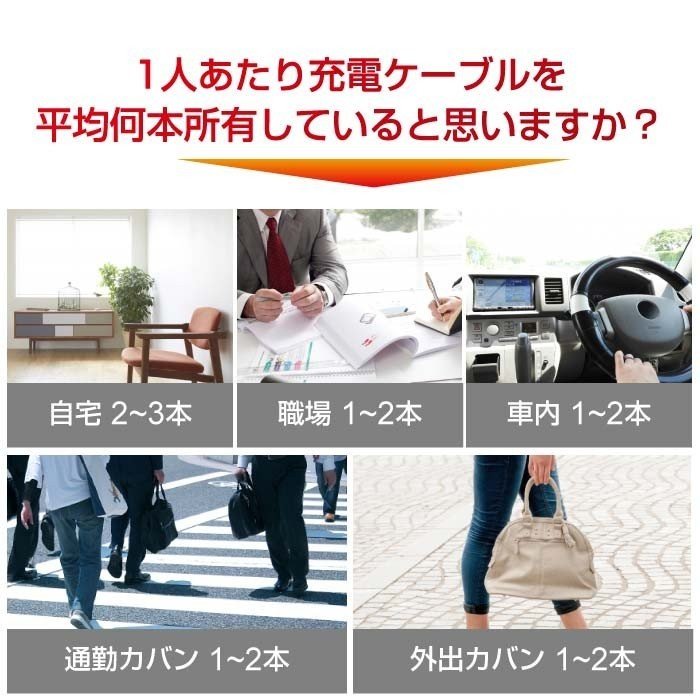職場、自宅、カバンなどを含め、一人当たり平均5-6本ケーブルを所有しています。