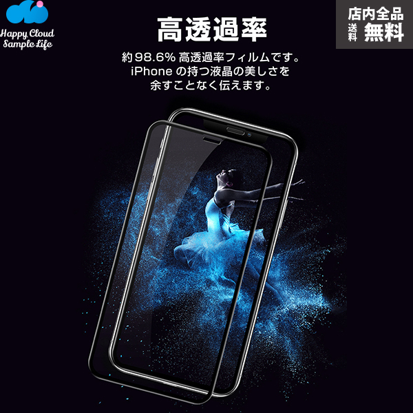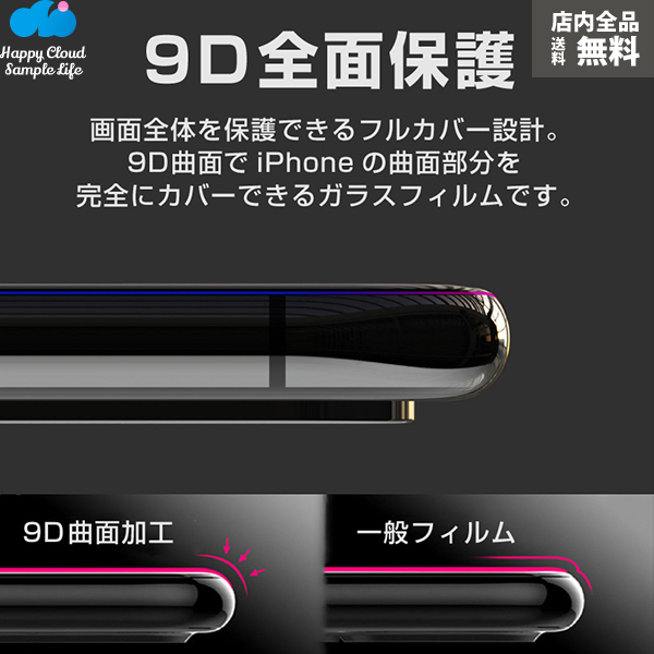 9D iPhone XS iPhone 7 8 iPhone7 iPhone8 Plus 強化ガラス 9H硬度 日本旭硝子製素材 衝撃吸収 気泡レス 指紋防止 全面保護 全面ガラスフィルムソフトフレーム