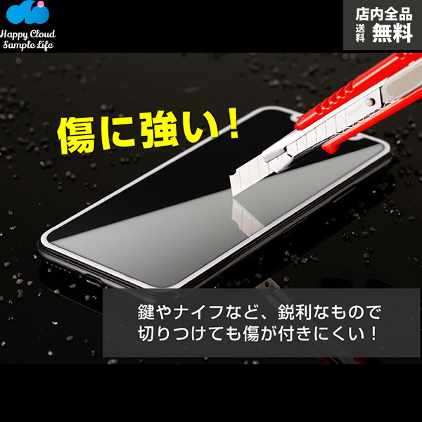 【表面強度9H】表面強度指数は9Hで、一般的なPETとフィルムの3倍(ナイフよりも硬い)、傷がつきにくい強化ガラス。鍵やナイフなど鋭利なもので切りつけてもキズが付きにくい、衝撃を吸収し画面の破損を防ぐことができる。