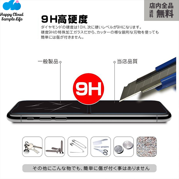 カッターなどでも傷が付かない硬度9Hの高品質な強化ガラスを使用。