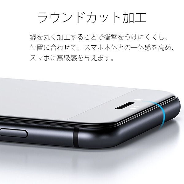 ガラスの縁を丸くカットすることで縁にかかる衝撃を吸収する構造でリスクを軽減!