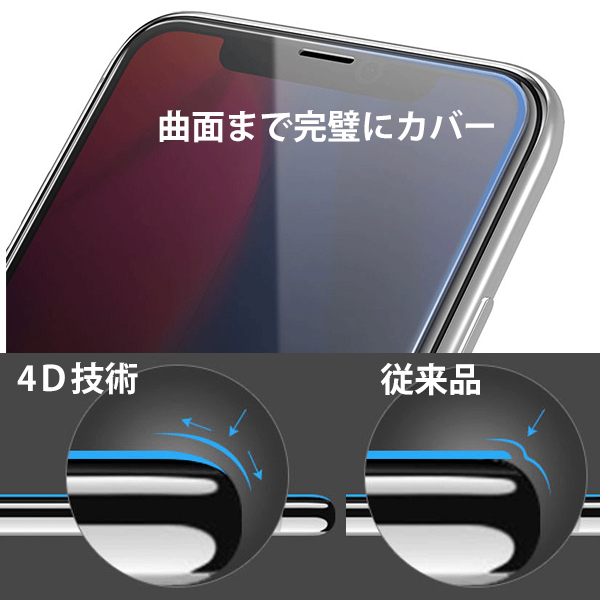 4Dガラスの縁を丸くカットすることで縁にかかる衝撃を吸収する構造でリスクを軽減!