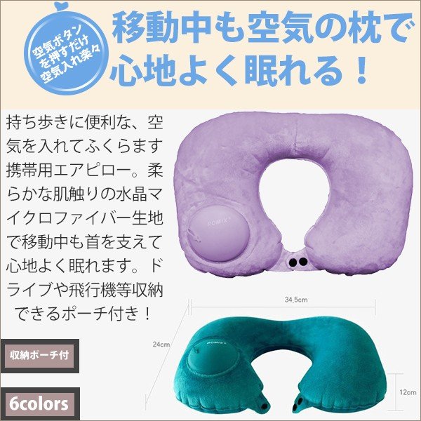 枕 空気 エア ピロー 快適 睡眠 携帯枕 タオル生地 エアピロー 旅行用品 カー用品 車 出張 ドライブ トラベル 持ち運び リラックス 収納ポーチ
