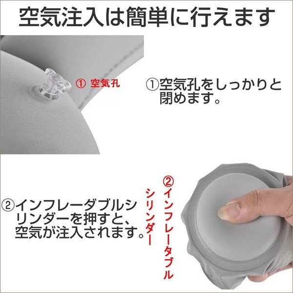いつでもどこでも空気の枕でやわらかく首を支えて快眠!