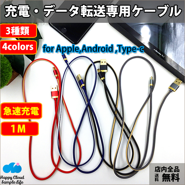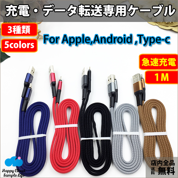 iPhone android type-c データ 充電ケーブル スマホ 充電器 アイフォン コード 1m 急速充電 断線防止 データ転送ケーブル USBケーブル コネクタ 強化ナイロン